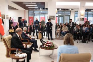 Μιλώντας στην ειδική εκδήλωση που πραγματοποιήθηκε στη Βιβλιοθήκη του Πανεπιστημίου Μπίναλι Γιλντιρίμ, ο κ. Πρόεδρος τόνισε ότι η Τουρκική Δημοκρατία της Βόρειας Κύπρου συνεχίζει τις προσπάθειές της με την πλήρη υποστήριξη της Δημοκρατίας της Τουρκίας προκειμένου να ενταχθεί στον Οργανισμό Τουρκικών Κρατών.