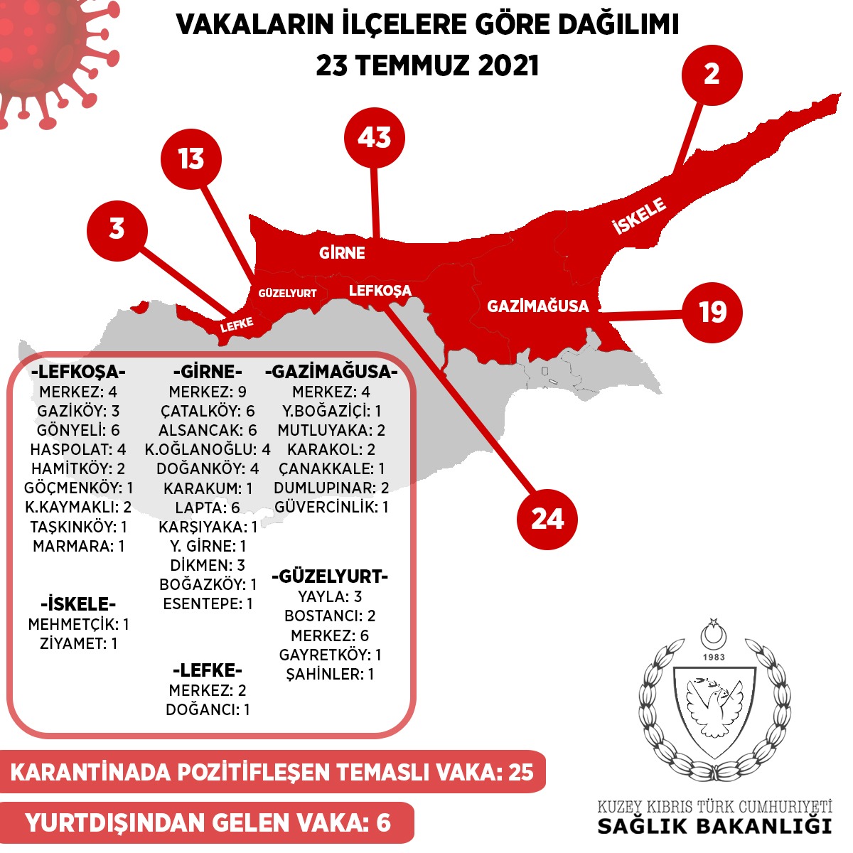 24 kişi Lefkoşa, 43 kişi Girne, 19 kişi Gazimağusa,13 kişi Güzelyurt, 2 kişi İskele, 3 kişi Lefke Bölgesi’ndendir.