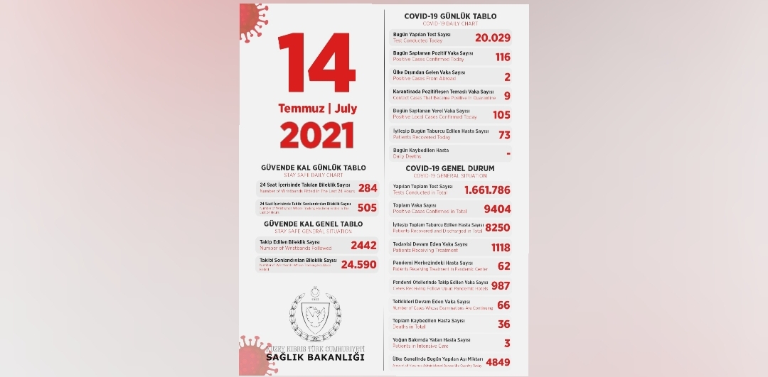 14 Temmuz 2021 Covid-19 genel durumu şöyle;