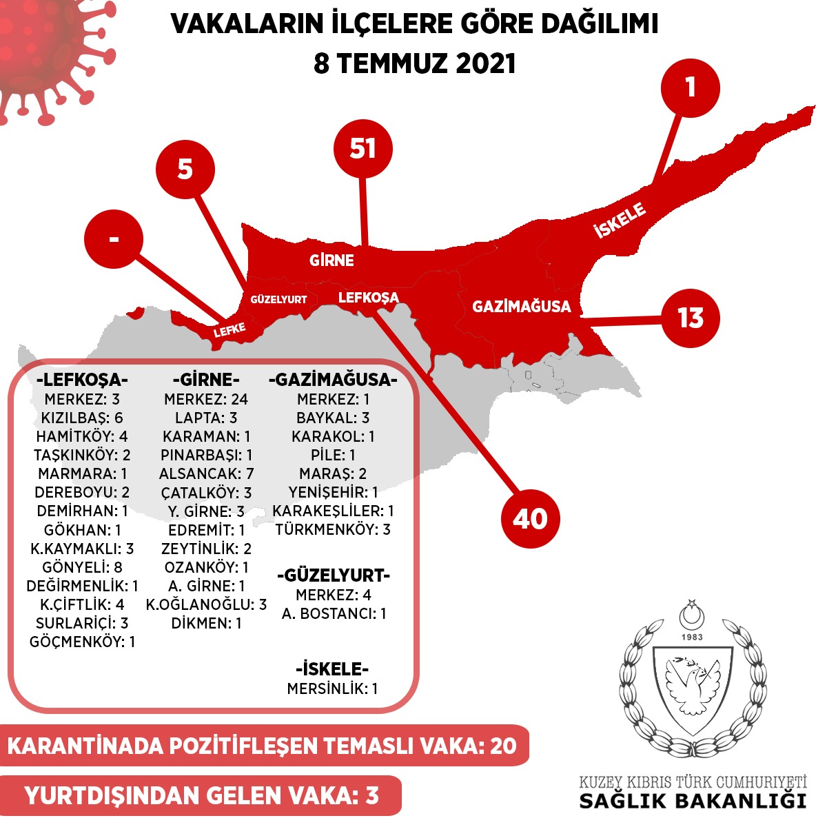40 kişi Lefkoşa, 51 kişi Girne, 13 kişi Gazimağusa, 5 kişi Güzelyurt, 1 kişi İskele Bölgesi’ndendir