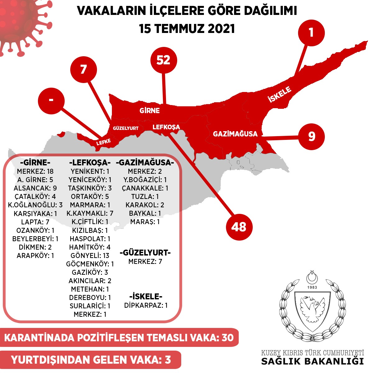 3 kişi hava yolu ile ülkemize gelmiştir. 30 kişi daha önce tespit edilen vakaların temaslılarıdır ve bu süre içinde gözetim altında bulunmaktadırlar. 117 kişi ise yerel vakadır.
