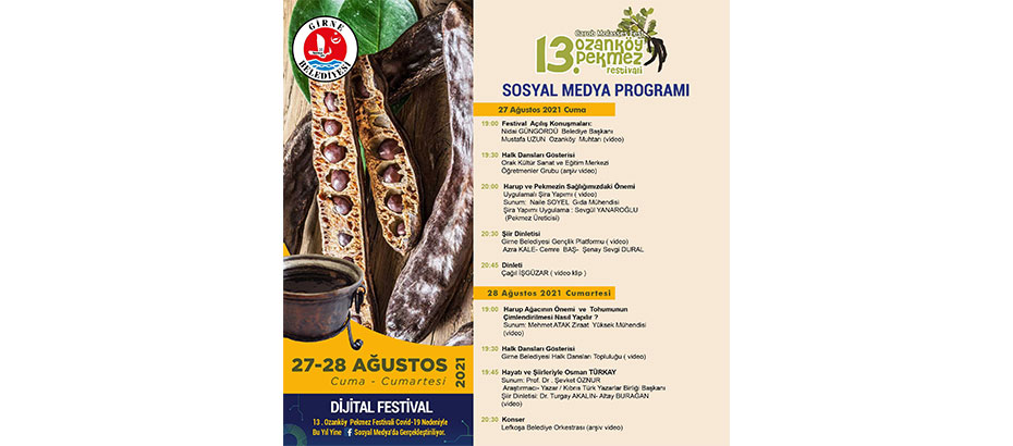 Ozanköy bölgesinin turistik tanıtımına, harup ve pekmez üretiminin devamlılığına katkı sağlamak amacıyla düzenlenen festival süresince halk dansları gösterilerinin olduğu videolar, harup ve pekmezin sağlık için öneminin anlatılacağı ve uygulamalı şira yapımının gösterileceği videolar, dinleti ve konserler Girne Belediyesi Facebook hesabından yayınlanacak.
