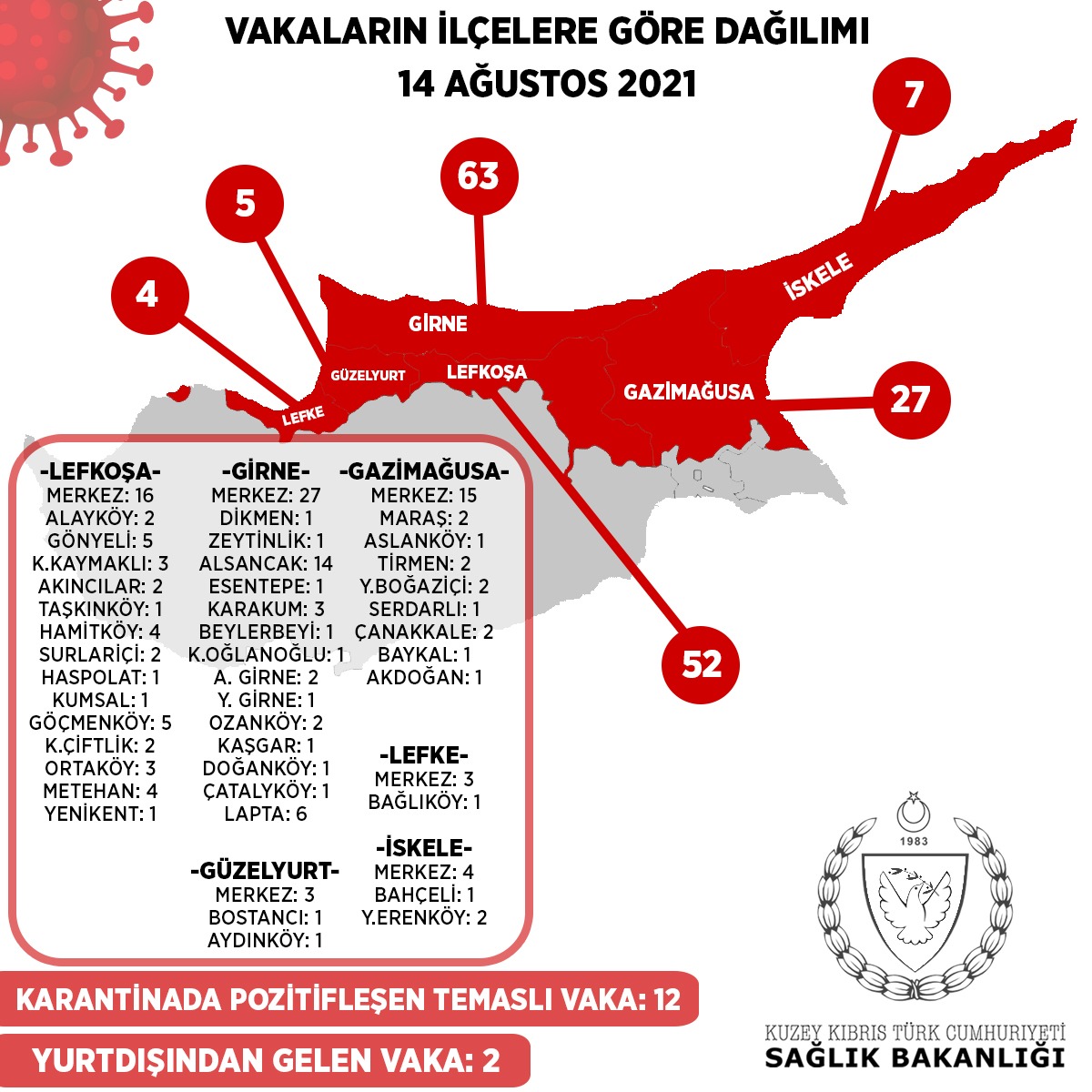 52 kişi Lefkoşa, 63 kişi Girne, 27 kişi Gazimağusa, 7 kişi İskele, 5 kişi Güzelyurt, 4 kişi Lefke Bölgesi’ndendir.