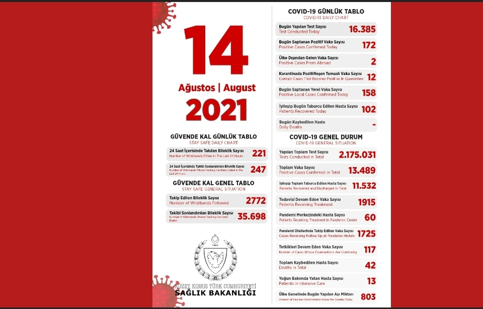 14 Ağustos 2021 Covid-19 genel durumu şöyle;