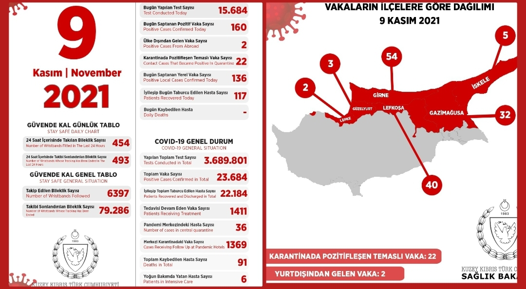 Σύμφωνα με ανακοίνωση του Υπουργείου Υγείας, το τελευταίο 24ωρο διενεργήθηκαν 15,684 τεστ και εντοπίστηκαν 160 κρούσματα, εκ των οποίων τα 136 είναι εγχώριες λοιμώξεις και τα 22 είναι επαφές των ήδη επιβεβαιωμένων κρουσμάτων.