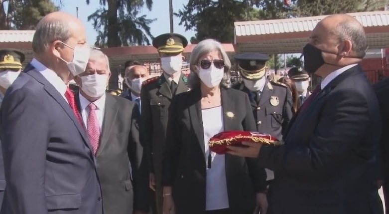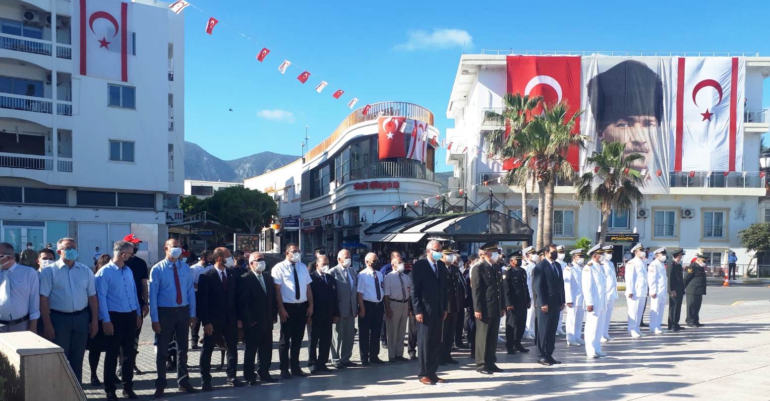 Koronavirüs tedbirleri çerçevesinde sosyal mesafe ve maske takma kuralıyla Atatürk Anıtı önünde yer alan törende anıta çelenkler sunuldu, Anıtkabir’den gelen toprak, Büyükelçi Başçeri tarafından Cumhurbaşkanı Tatar’a sunuldu.Tören, saygı duruşu ile tamamlandı.