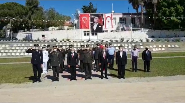 Güzelyurt’taki tören de, Atatürk Anıtı Önü’nde yapıldı. Tören, protokol sırasına göre anıta çelenklerin konulmasıyla başladı. Ardından bir dakikalık saygı duruşunda bulunuldu. Tören, İstiklal Marşı eşliğinde bayrakların göndere çekilmesiyle sona erdi.