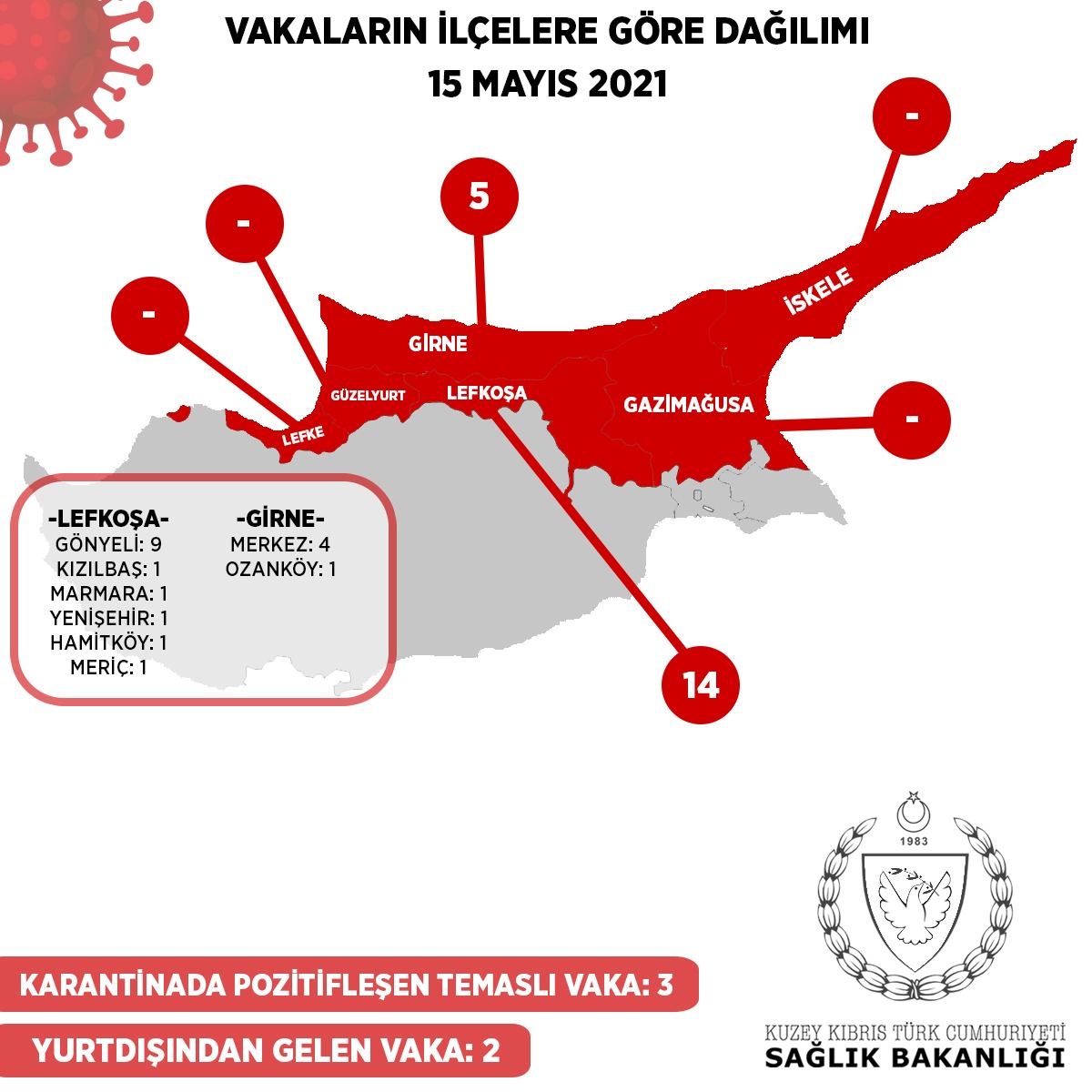 2 kişi hava yolu ile ülkemize gelmiştir. 3 kişi daha önce tespit edilen vakaların  temaslılarıdır ve bu süre içinde gözetim altında bulunmaktadırlar. 19 kişi ise yerel vakadır.
