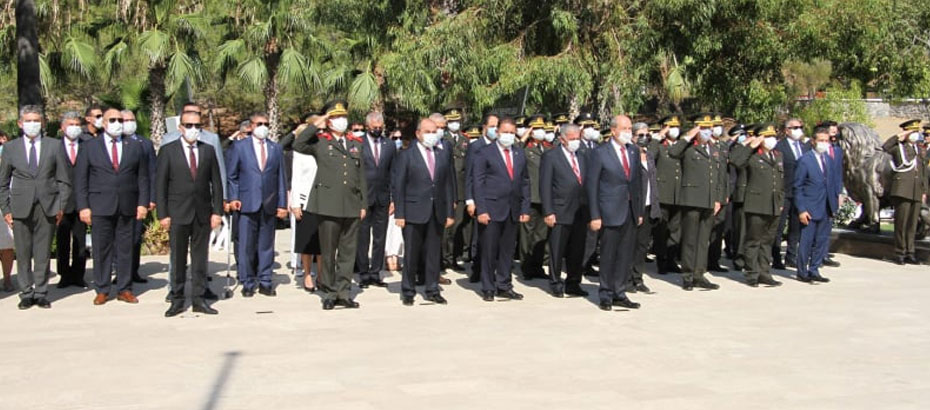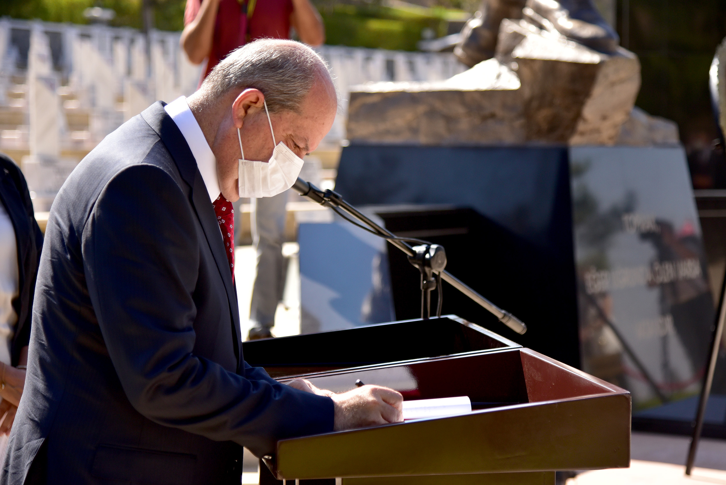 Tören, Cumhurbaşkanı Ersin Tatar’ın şehitlik özel defterini imzalamasının ardından son buldu.