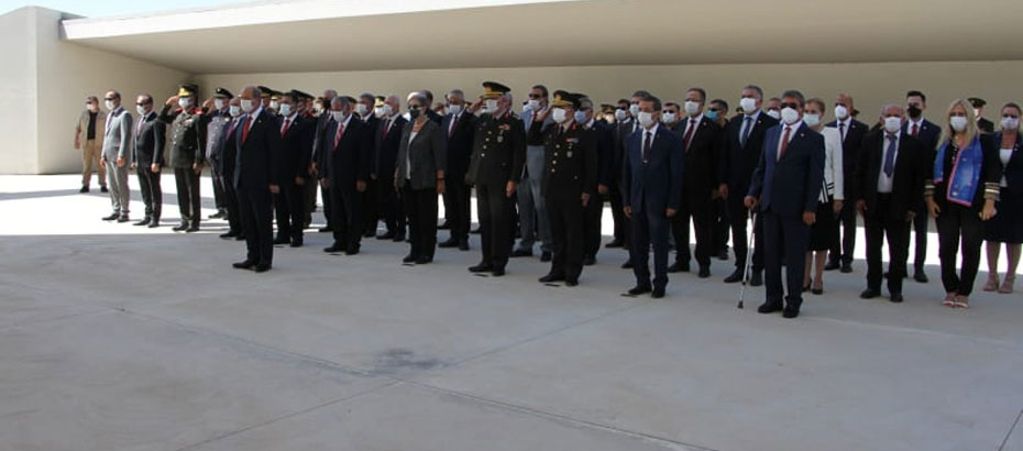 Anıta çelenklerin sunulması, saygı duruşu ve İstiklal Marşı eşliğinde bayrakların göndere çekilmesi ile başlayan tören, anıt özel defterinin Cumhurbaşkanı Ersin Tatar tarafından imzalanmasıyla son buldu.