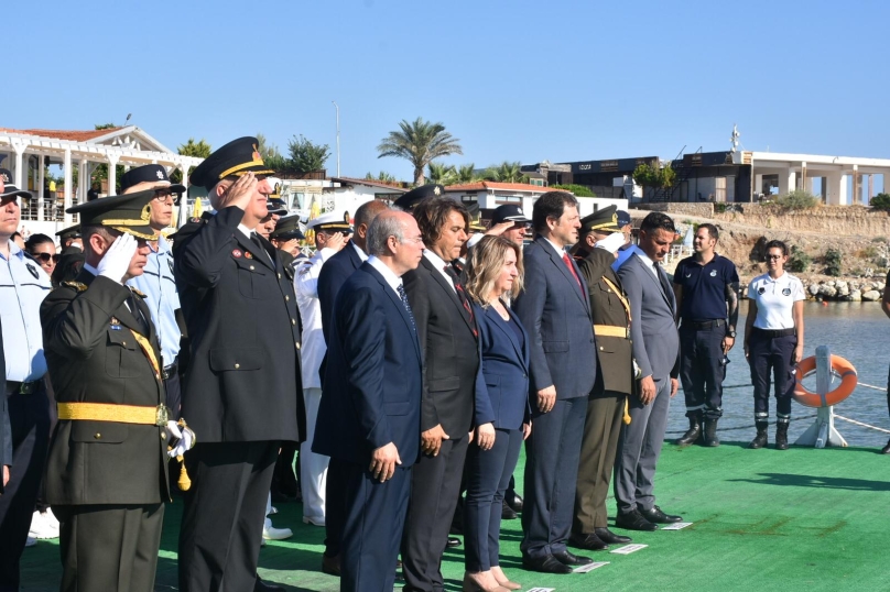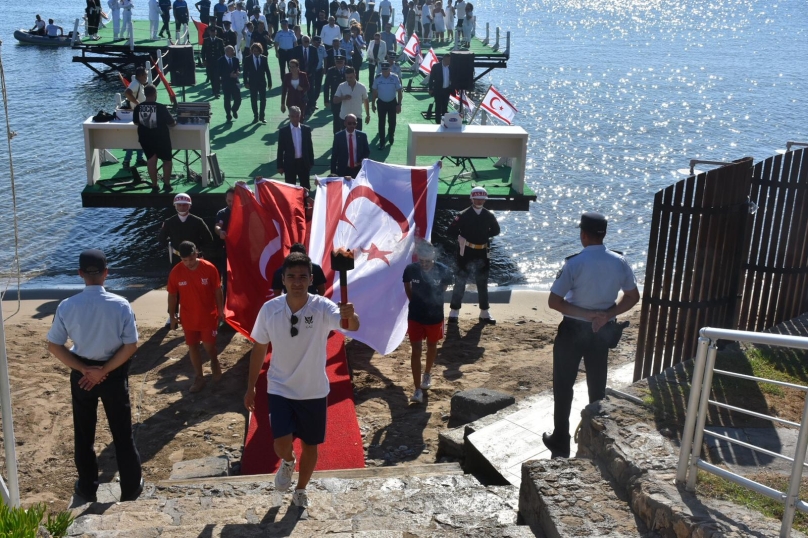 Tören, protokol sırasına göre çelenklerin denize bırakılmasıyla başladı. Törende daha sonra, KKTC Yelken Motor Kürek Federasyonu tarafından Türkiye Aydıncık’tan getirilen bayraklar, bayrağı adaya çıkaracak askere teslim edildi.