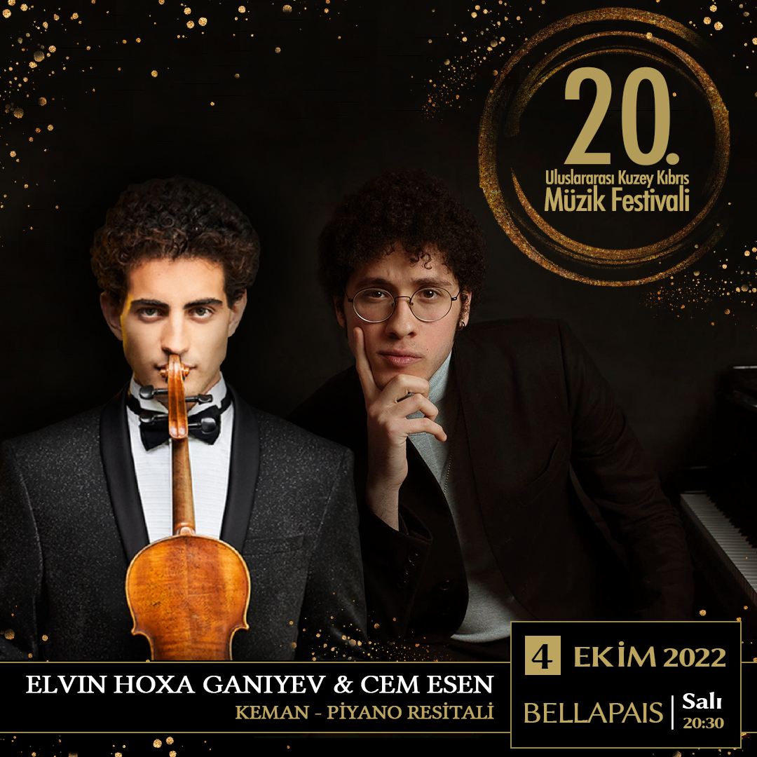 Kuzey Kıbrıs Müzik Derneği’nin bu yıl 20’ncisini düzenlediği Uluslararası Kuzey Kıbrıs Müzik Festivali, yarın akşam Elvin Hoxa Ganiyev & Cem Esen’in keman – piyano resitaliyle devam ediyor.
