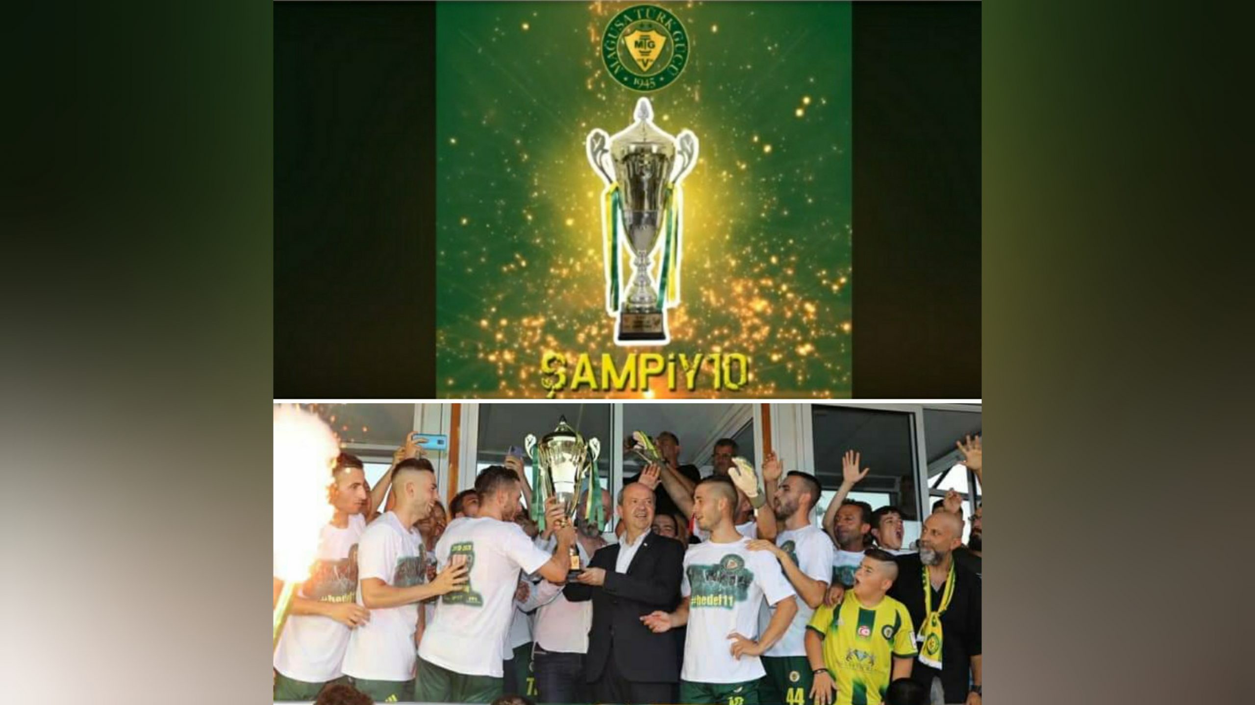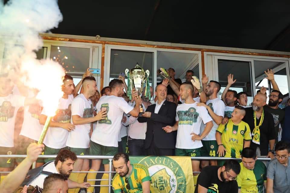 Mağusa Türk Gücü’nün şampiyonluk kupasını maçı izleyen Başbakan Ersin Tatar verdi.