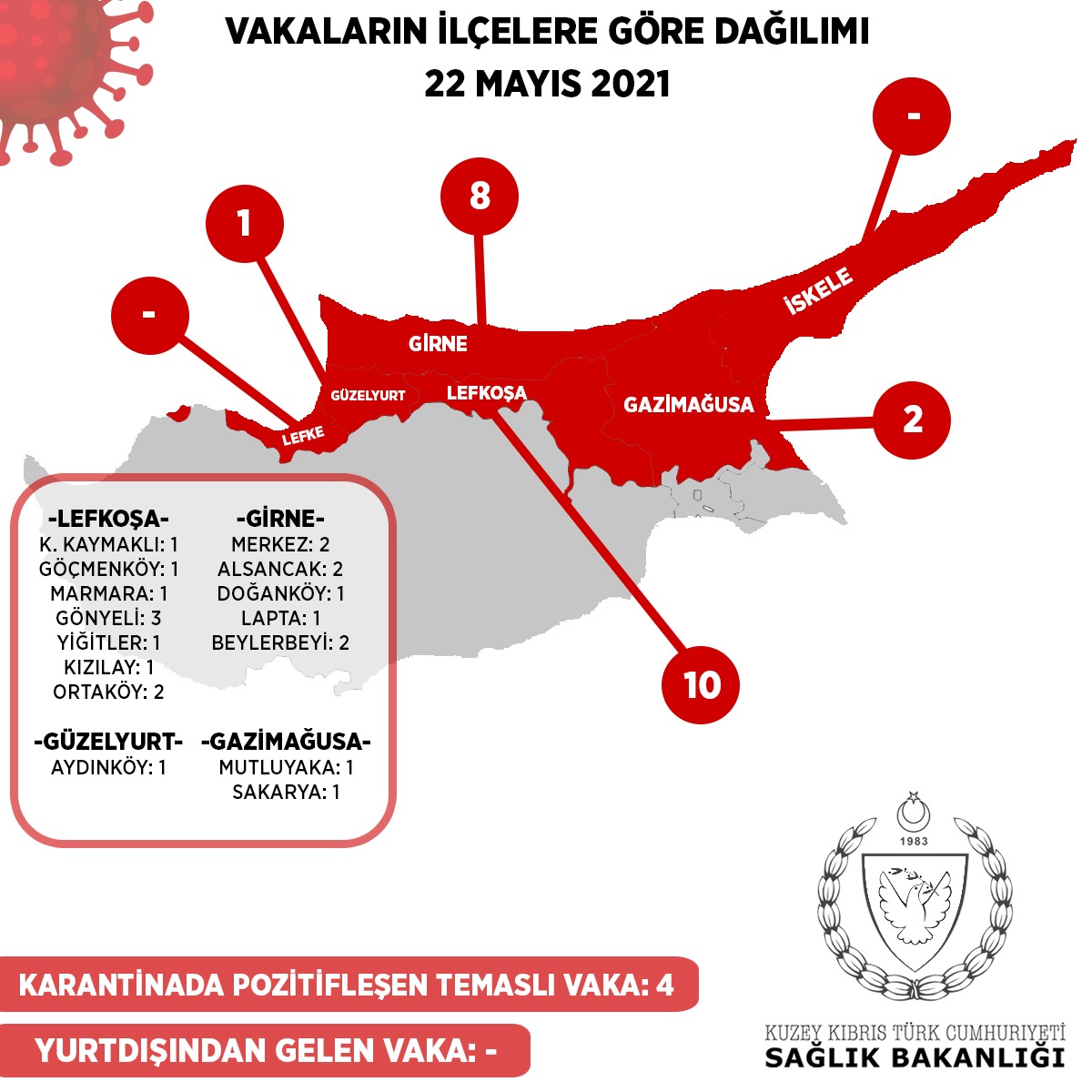 4 kişi daha önce tespit edilen vakaların temaslılarıdır ve bu süre içinde gözetim altında bulunmaktadırlar. 21 kişi ise yerel vakadır.