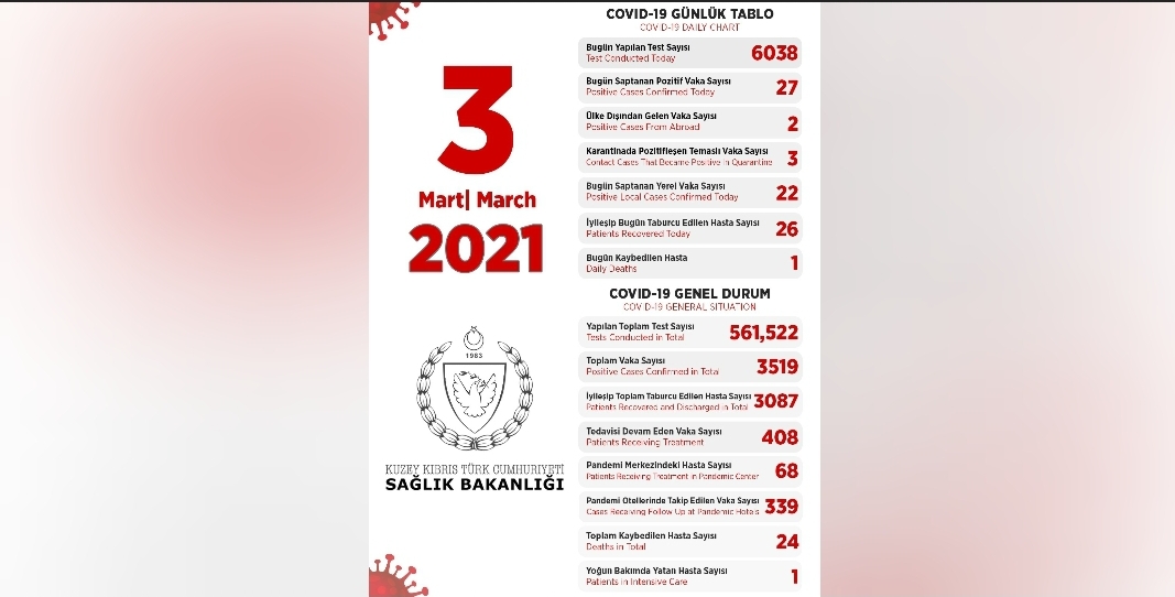 3 Mart 2021 Covid-19 genel durumu şöyle: