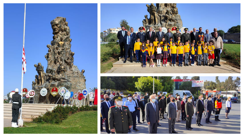 Başkent Lefkoşa’da Atatürk Anıtı önünde saat 10.00’da tören yapıldı. Törende, protokol sırasına göre çelenkler anıta sunuldu. Saygı duruşu ve İstiklal Marşı’nın ardından bayraklar göndere çekildi.