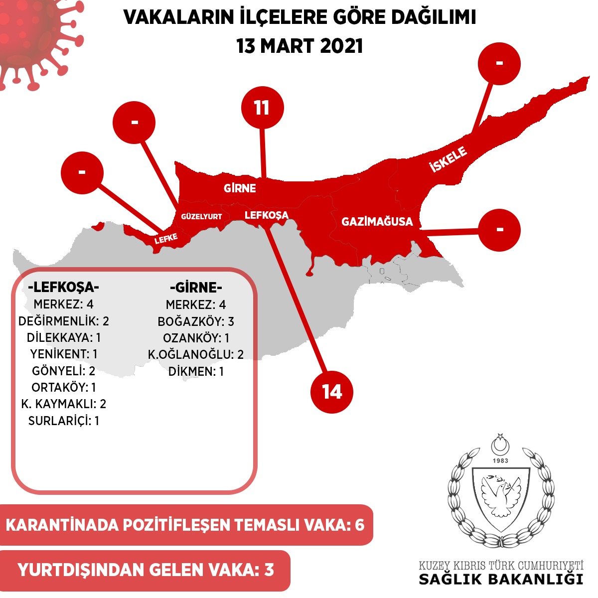 Girne Merkez- 4 / Boğazköy-3 / Ozanköy- 1 / Karaoğlanoğlu-2 / Dikmen-1