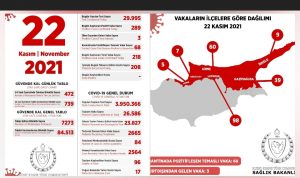 Τα τρία άτομα αφίχθησαν από το εξωτερικό, τα 98 περιστατικά εντοπίστηκαν στην επαρχία Λεφκόσια, τα 60 στην Γκίρνε, τα 39 στην Γκαζίμαγουσα, τα 7 στην Γκιουζέλγιουρτ, τα 9 στην Ισκέλε και τα 5 στην Λέφκε.