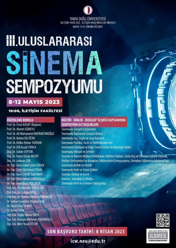 Yakın Doğu Üniversitesi’nin (YDÜ) düzenlediği 3. Uluslararası Sinema Sempozyumu, “Kültür- Kimlik- İdeoloji” teması ile 8-12 Mayıs 2023 tarihlerinde yapılacak.