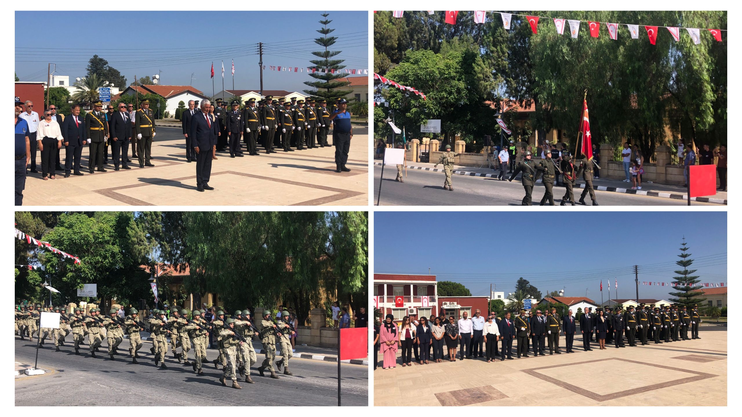 Güzelyurt’taki tören Güzelyurt Arkeoloji Müzesi önünde tören birliklerinin denetlenmesiyle devam etti. Kıbrıs Türk Barış Kuvvetleri 49. Piyade Alay Komutanlığı adına Piyade Üsteğmen İbrahim Oğuzhan Yılmaz, Kaymakamlık adına Güzelyurt Kurtuluş Lisesi tarih Öğretmeni Laika Yurt günün anlam ve önemini belirten bir konuşma yaparken, Güzelyurt Kurtuluş Lisesi öğrencisi Eylül Darbaz “Akdenize Doğru” adlı şiiri okudu. Konuşmalarda 30 Ağustos’un Türk ordusunun varlığına ve vatanına kastedenlere karşı direnerek verdiği eşi görülmemiş mücadelesi anlatıldı.