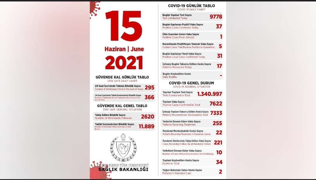 15 Haziran 2021 Covid-19 genel durumu şöyle;