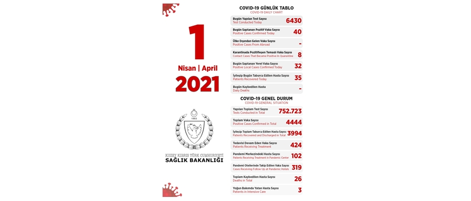 1 Nisan 2021 Covid-19 genel durumu şöyle: