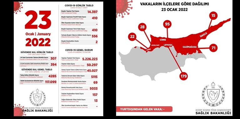 Son 24 saatte yapılan test sayısı 14.397 olup, 410 pozitif vakaya rastlanmış, 2 kişi vefat etmiş, 556 kişi taburcu edilmiştir.