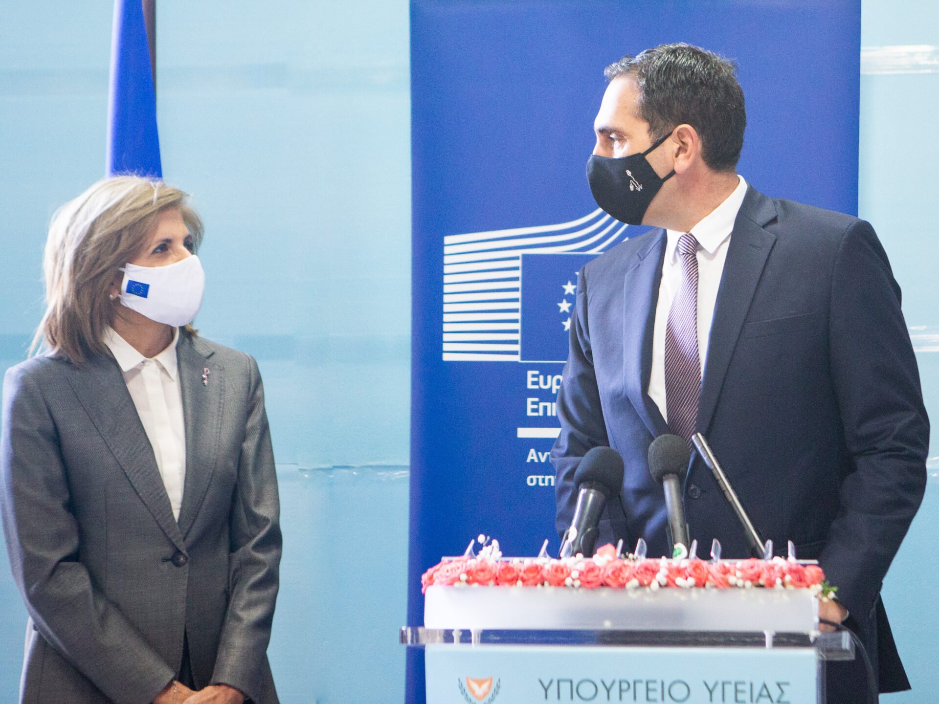 Saat 13.00 sularında Larnaka Havalimanı’na getirilen aşıları AB Sağlık ve Gıda Güvenliği Komiseri Stella Kiriakidu ile Rum Sağlık Bakanı Konstandinos Yoannu teslim aldı.