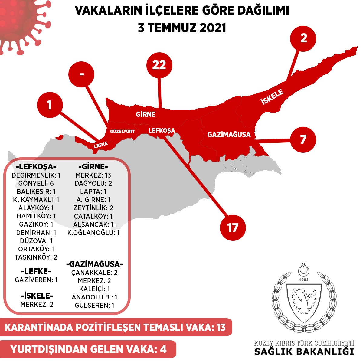 4 kişi hava yolu ile ülkemize gelmiştir. 13 kişi daha önce tespit edilen vakaların temaslılarıdır ve bu süre içinde gözetim altında bulunmaktadırlar. 49 kişi ise yerel vakadır.