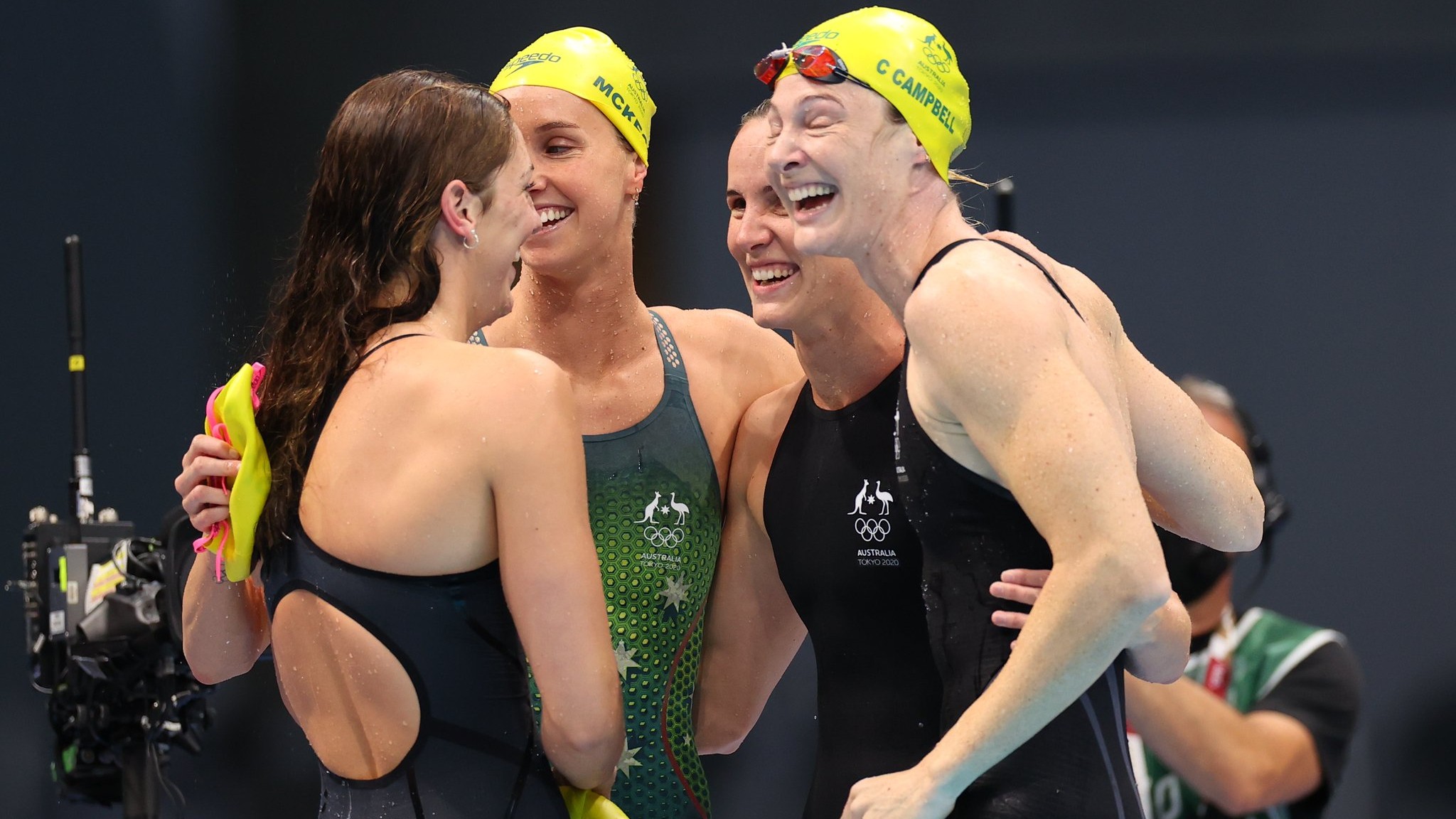 Kadınlar 4×100 serbest bayrak yarışında Avustralya takımı, 3.29.69’luk dereceleriyle dünya rekoru kırarak altın madalyaya uzandı. Bir önceki rekor da 2018’de yine Avustralya tarafından 3.30.05’lik dereceyle kırılmıştı.