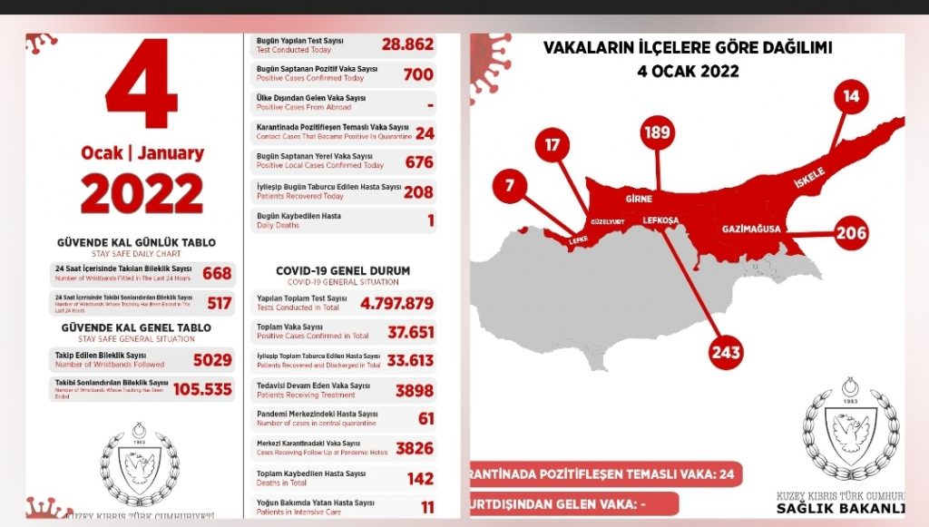 Son 24 saatte yapılan test sayısı 28.862 olup, 676’sı yerel, 700 pozitif vakaya rastlanmış,1 kişi vefat etmiş, 208 kişi taburcu edilmiştir.