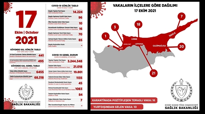 17 Ekim 2021 Covid-19 genel durumu şöyle;