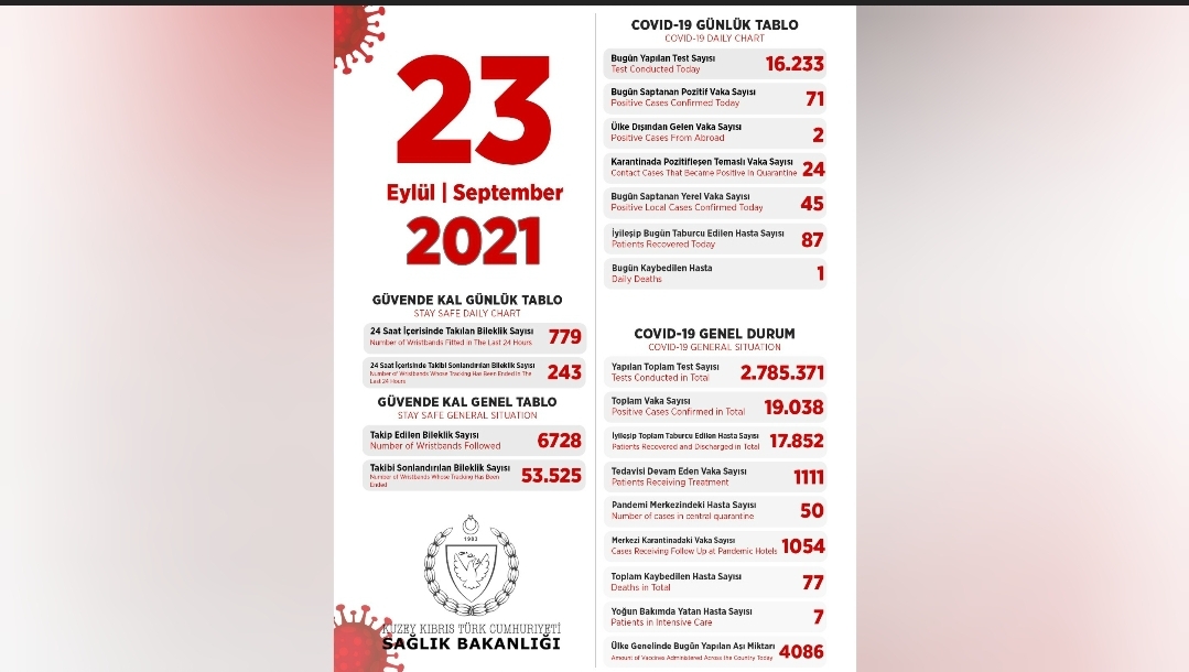 Σύμφωνα με ανακοίνωση του Υπουργείου Υγείας, το τελευταίο 24ωρο διενεργήθηκαν 16,233 τεστ και εντοπίστηκαν 71 κρούσματα, εκ των οποίων τα 45 είναι εγχώριες λοιμώξεις.