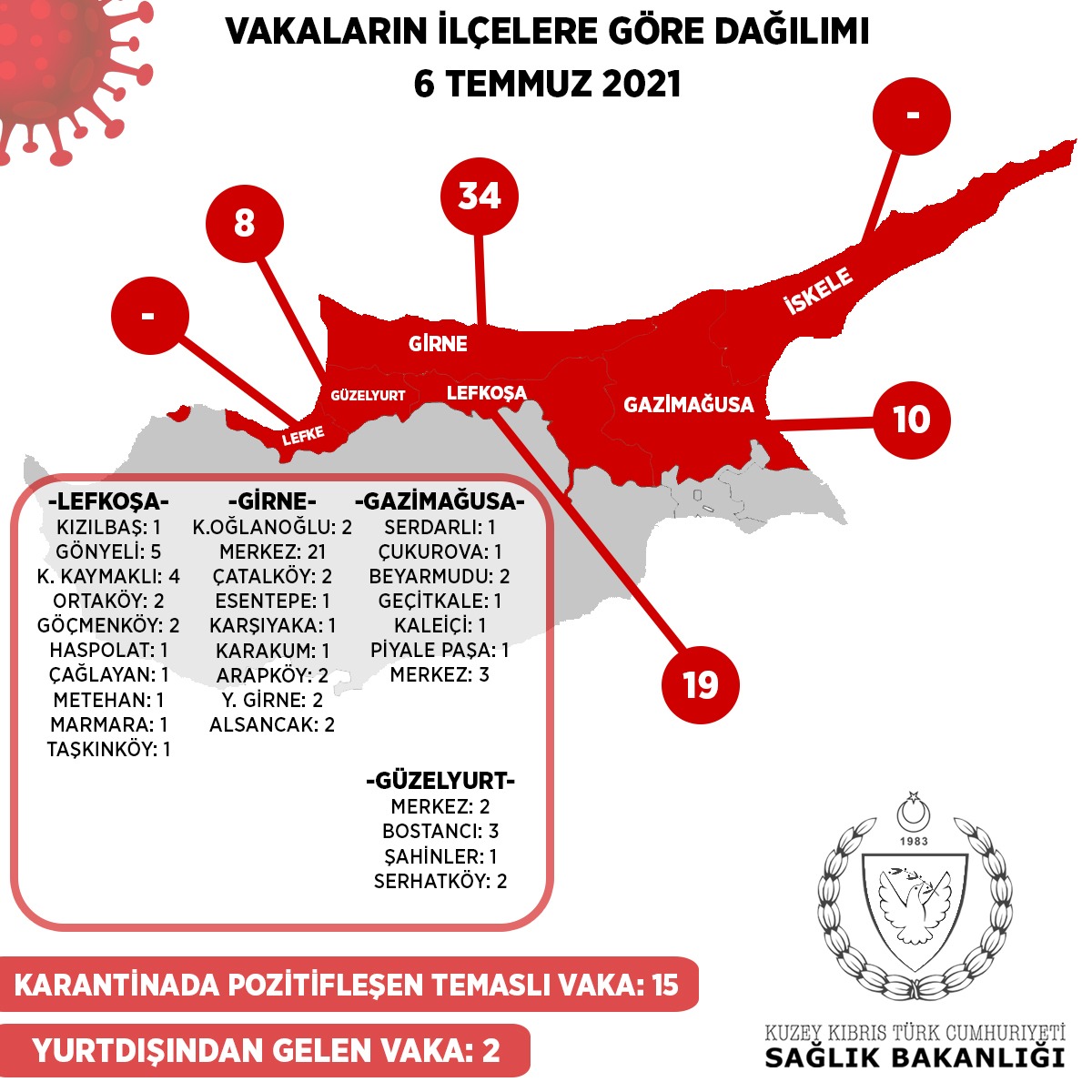 Girne Merkez-21 / Çatalköy-2 / Esentepe-1/ Karaoğlanoğlu-2/ Karşıyaka-1/ Karakum-1/ Arapköy-2/ Yukarı Girne-2/ Alsancak-2