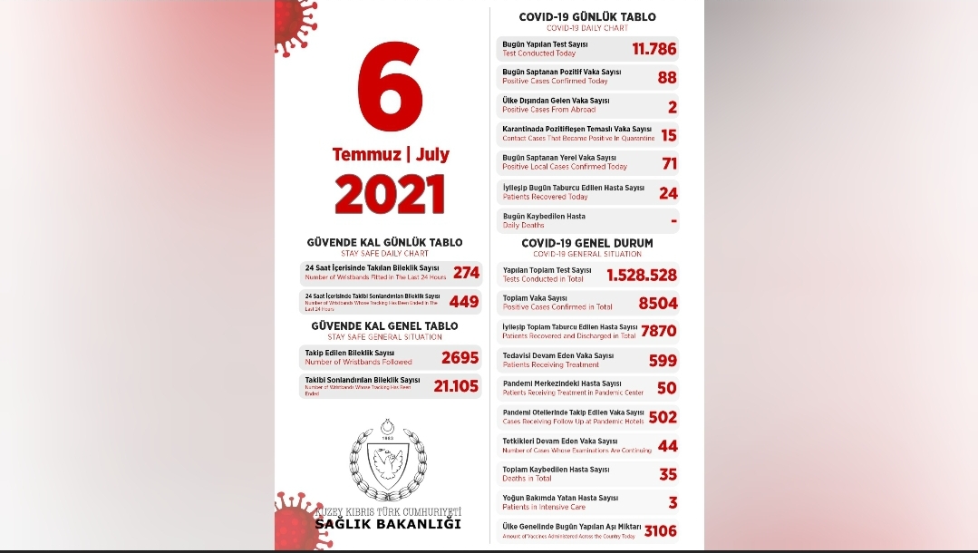6 Temmuz 2021 Covid-19 genel durumu şöyle;