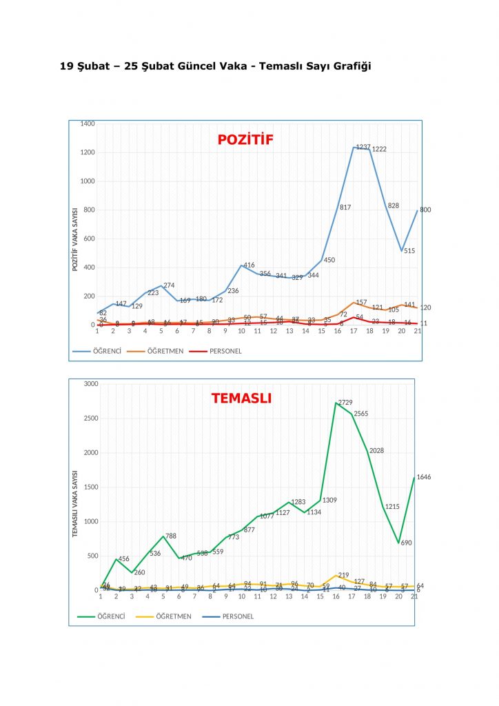 Öğrenciler arasındaki pozitif vakaların 206’sı İlköğretim, 494’ü Genel Ortaöğretim 100’ü de Mesleki Teknik Öğretim’e bağlı okullardan.