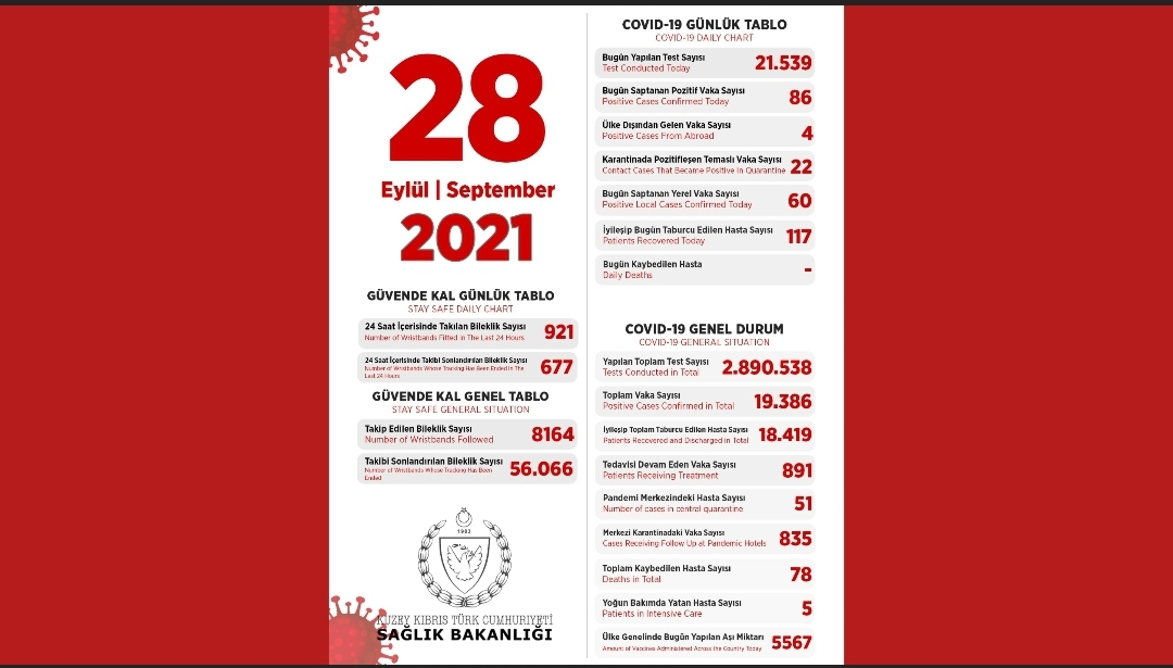 Σύμφωνα με ανακοίνωση του Υπουργείου Υγείας, το τελευταίο 24ωρο διενεργήθηκαν 21,539 τεστ και εντοπίστηκαν 86 κρούσματα, εκ των οποίων τα 60 είναι εγχώριες λοιμώξεις.