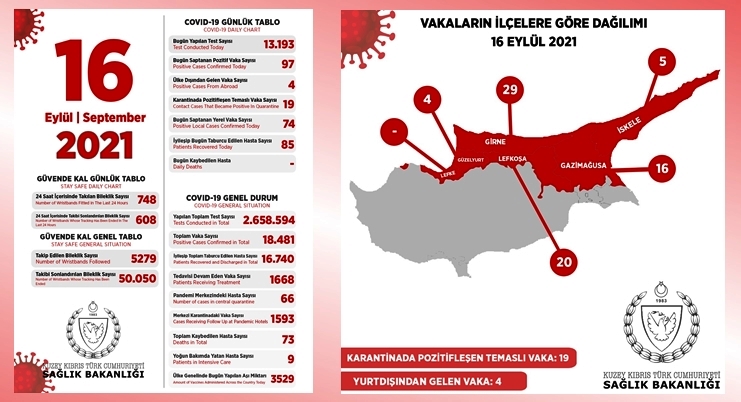 Σύμφωνα με ανακοίνωση του Υπουργείου Υγείας, το τελευταίο 24ωρο διενεργήθηκαν 13,193 τεστ και εντοπίστηκαν 97 κρούσματα, εκ των οποίων τα 74 είναι εγχώριες λοιμώξεις.
