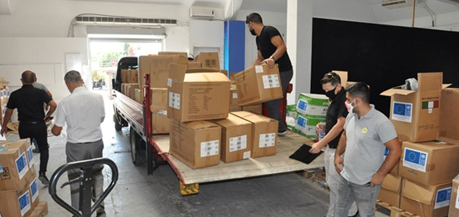AB’nin Covid-19’a yönelik hibe ettiği malzemeler belediyelere dağıtılmaya başlandı