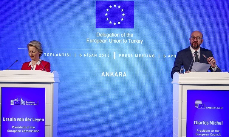 Michel ve AB Komisyonu Başkanı Ursula von der Leyen, AB Türkiye Delegasyonunda ortak basın toplantısı düzenledi.