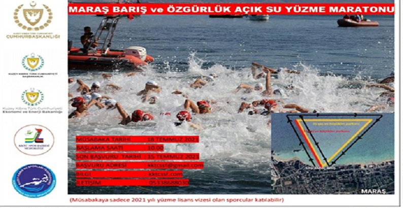 Barış ve Özgürlük Açık Su Yüzme Maratonu,18 Temmuz 2021 tarihinde saat 10:00’da 15 yaş, Büyük Kadın, Erkek 3000 m, 14 yaş, Küçük Kız ve Erkek 1500 m kategorilerinde Maraş’ta gerçekleştirilecek.