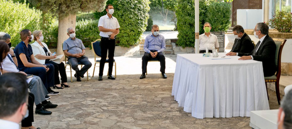 Cumhurbaşkanı Mustafa Akıncı, COVİD-19 vakalarının tırmanışa geçmesi ve yerel vakaların artması üzerine Cumhurbaşkanlığı Sağlık Danışma Kurulu üyeleri ve sağlık örgütlerinin başkan ve temsilcileriyle Cumhurbaşkanlığı’nda bir araya geldi.