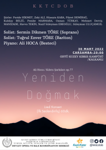 Besteci Ali Hoca tarafından bestelenen ve klasik lied repertuarına kazandırılan eserlerden oluşan “Yeniden Doğmak” lied serisinin ilk seslendiriliş konseri 30 Mart Çarşamba günü yapılacak.