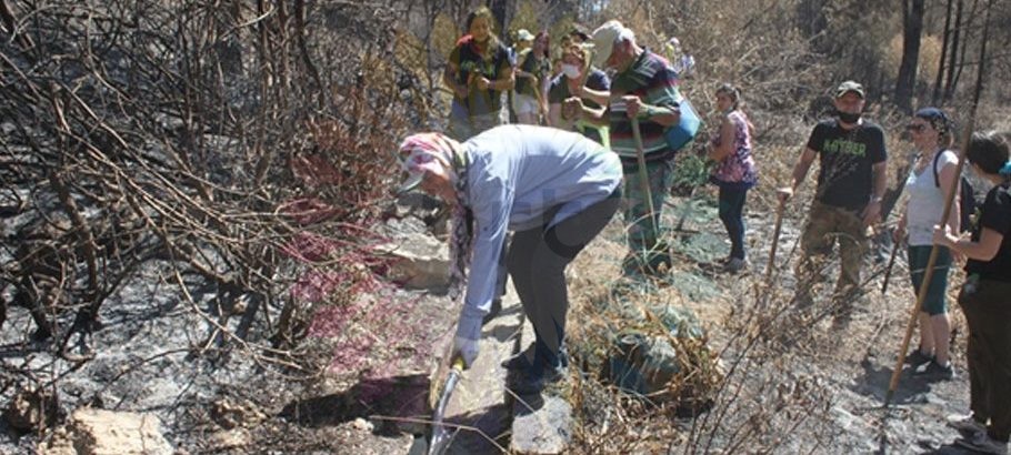 “Yaşamı tekrardan filizlendirmek için Anıt Zeytinlere giden su kanallarını temizliyoruz. Sen de çapanı, küreğini, tırmığını ve yüreğini al da gel” sloganıyla Kalkanlı Yardımlaşma ve Dayanışma Derneği (KAYDER) ile Kalkanlı Anıt Zeytin Ağaçları Koruma Birliği (KAZAK-1) organizasyonuyla düzenlenen etkinlikte, 17 Mayıs’ta çıkan yangında tıkanan su kanalları açıldı.