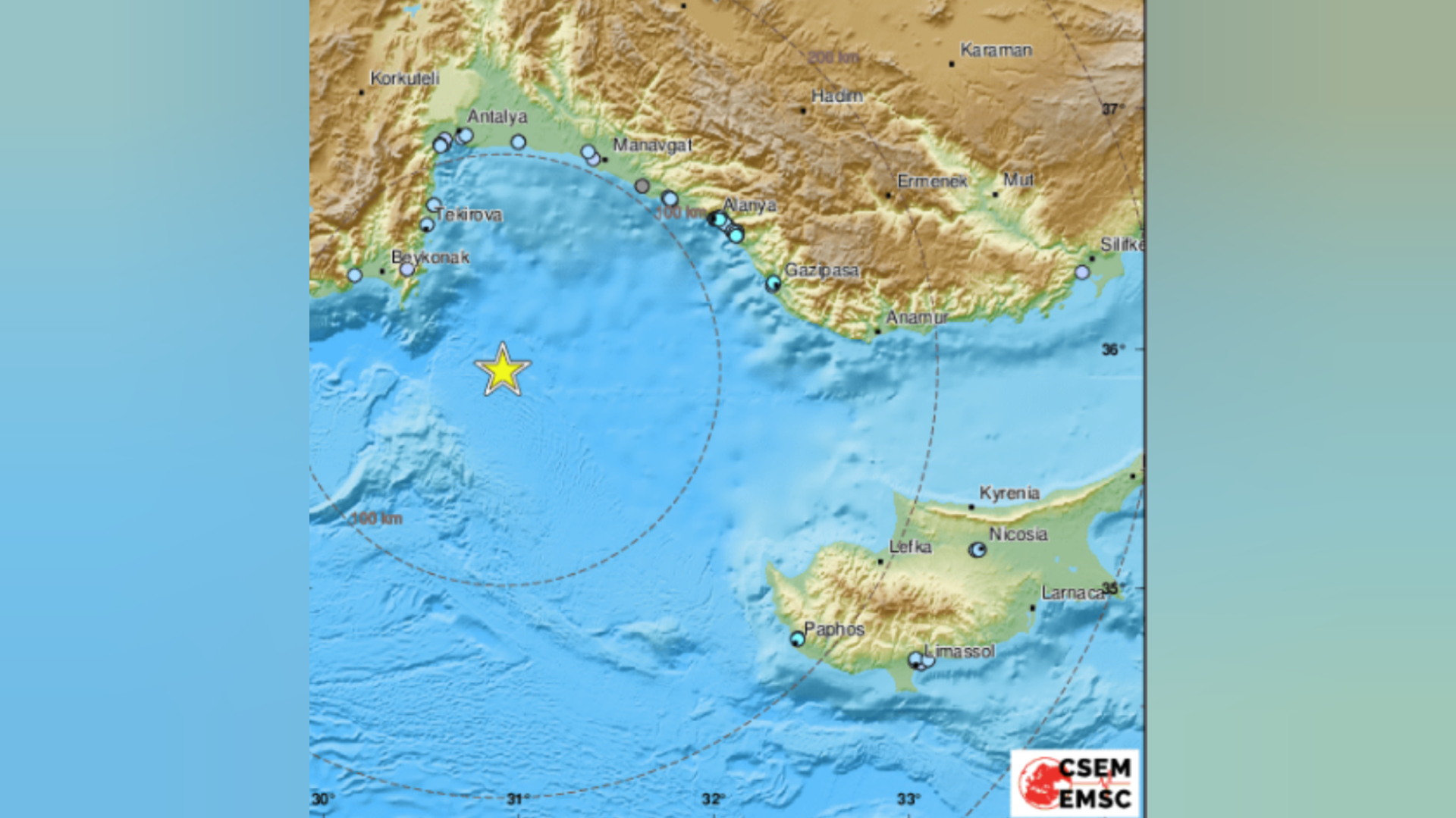 Akdeniz’de, Antalya ile Kıbrıs arasında saat 19.41’de deprem meydana geldi.