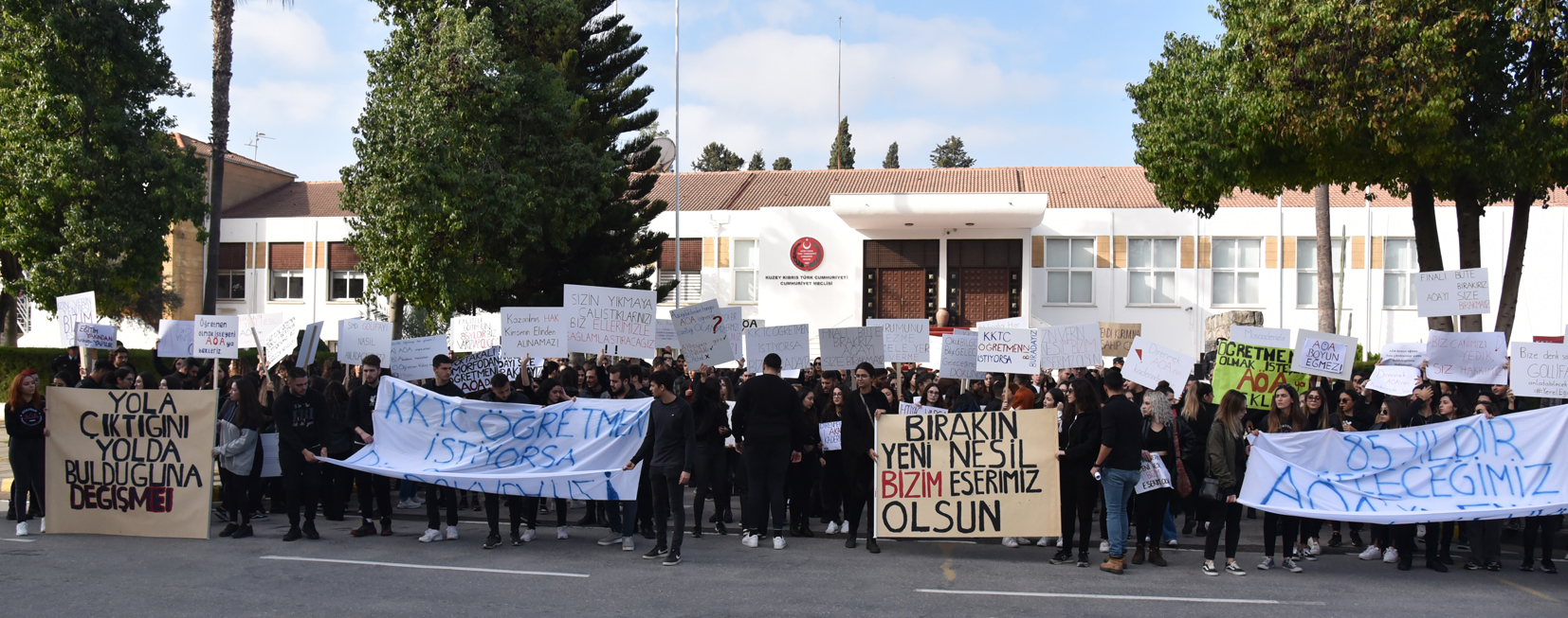 Atatürk Öğretmen Akademisi (AÖA) öğrencileri, Lefkoşa Terminal’den, Meclis önüne yürüyerek, Meclis’in alt komitesinde bekleyen Öğretmenler Değişiklik Yasa Tasarısı ve Atatürk Öğretmen Akademisi ile ilgili Bakanlar Kurulu kararını protesto etti.