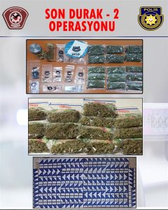 Polis Basın Bülteni’ne göre, E.K.’nin (E-51) ikametgahında yapılan aramada, yaklaşık 650 gr. ağırlığında hintkeneviri ile yaklaşık 28 gr. ağırlığında kokain türü uyuşturucu madde ile gümrüğe beyan edilmemiş 360 paket sigara bulunarak emare olarak alındı.