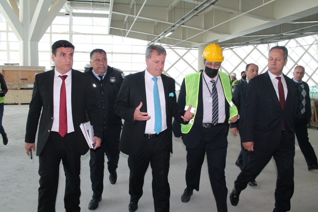 Bayındırlık ve Ulaştırma Bakanı Erhan Arıklı, inşaatı devam eden yeni Ercan Havalimanı terminal binasında incelemelerde bulunarak yetkililerden bilgi aldı.