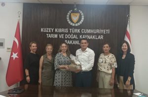 Minister of Agriculture and Natural Resources Dursun Oğuz on Monday received the Head of the Cyprus Turkish Entrepreneurial Women’s Association (GIKAD) İçim Kavuklu and members of the Board of Directors of the Association.