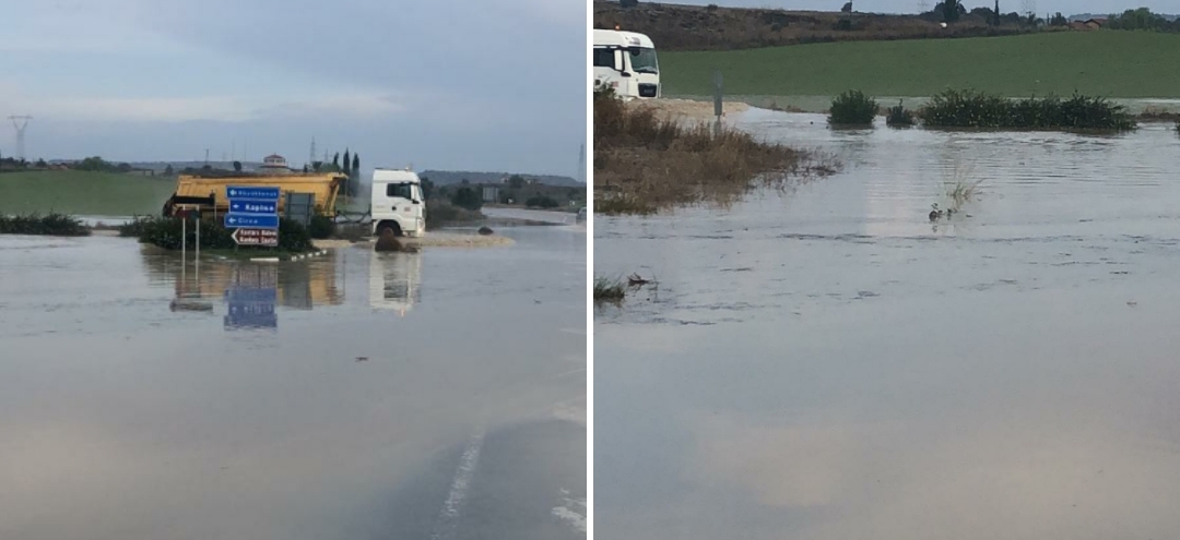 Şiddetli yağışlardan dolayı ayrıca İskele- Karpaz Anayolunun Mehmetcik –Çayırova kavşakları arasında su birikintileri oluştu.